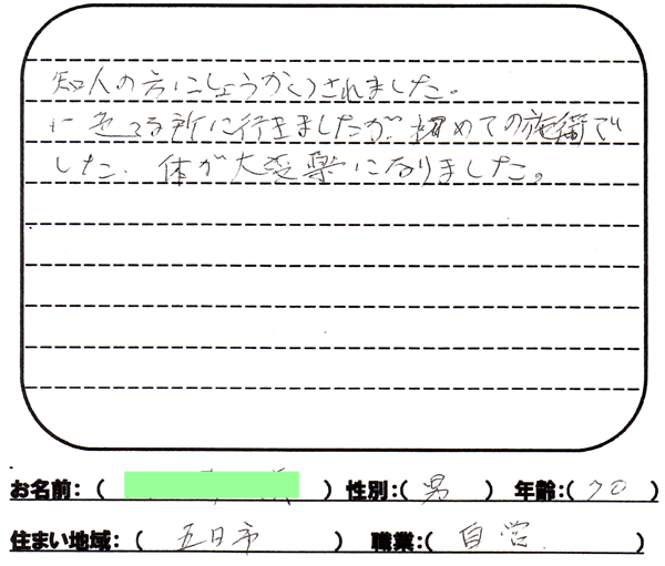 1995年現在地にあきるの波多野整骨院を開業。あきる野市をはじめ